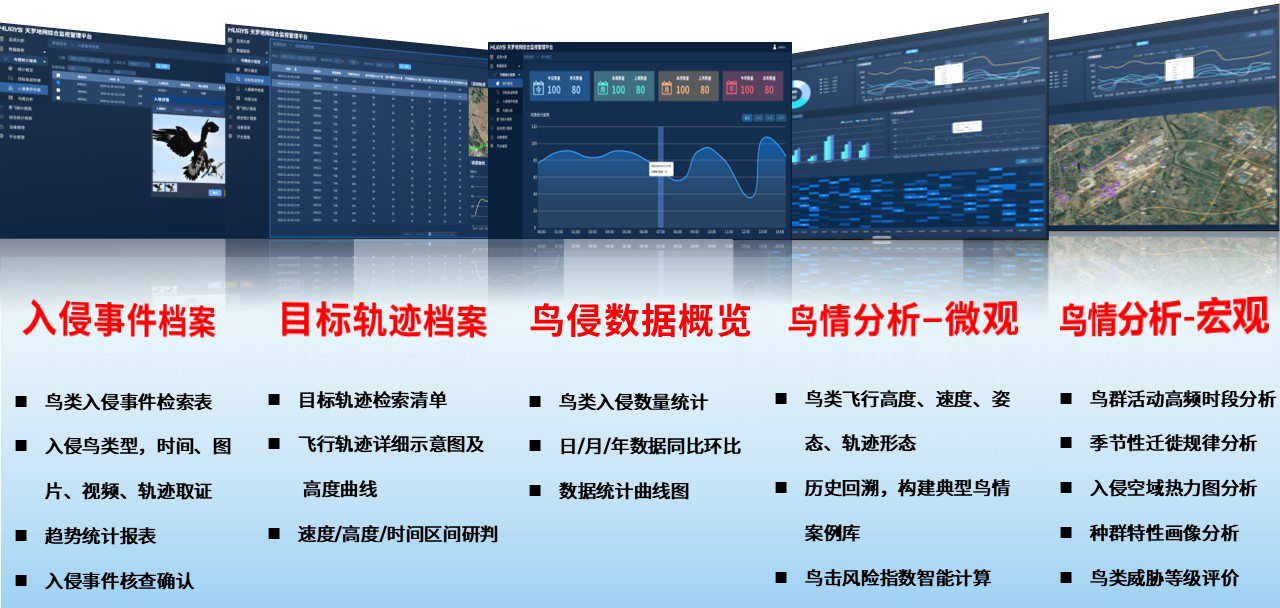 鳥情數(shù)據(jù)深度挖掘與特征比對,打造特色化鳥情分析板塊,建立特征比對庫,助力構(gòu)建鳥群活動畫像,實現(xiàn)從源頭化解空域安全風險,助力機場建立“事前預警、事中攔截、事后溯源”的全流程主動防護機制。