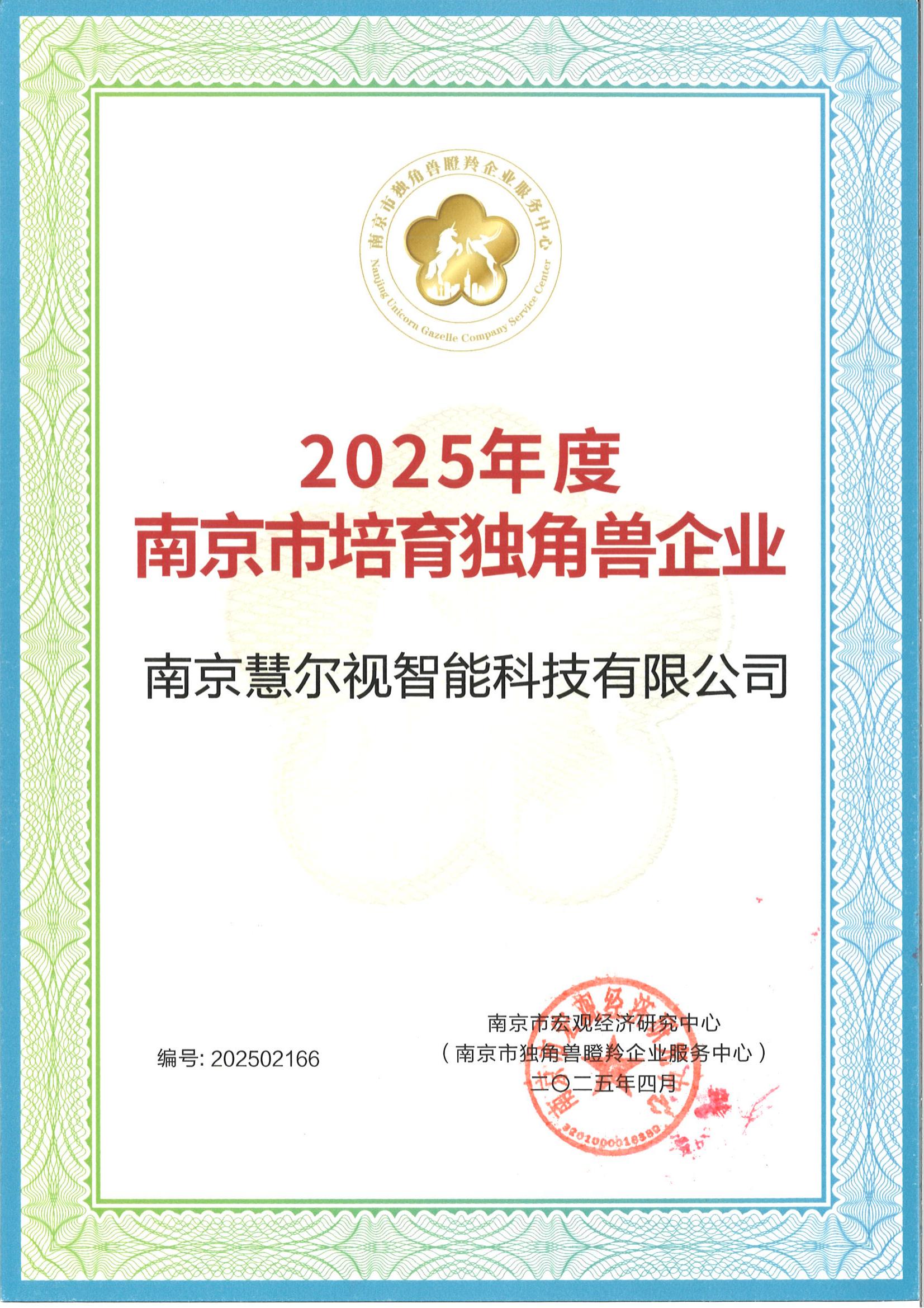 慧爾視榮膺“2025年度南京市培育獨(dú)角獸企業(yè)”稱號!
